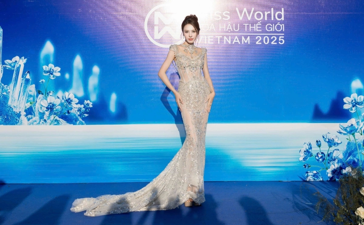 Hoa hậu Võ Lê Quế Anh tôn dáng với đầm voan đính kết đá.