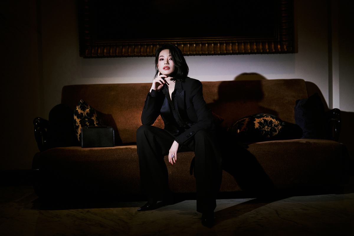 Cô phá cách với kiểu tóc ngang vai, trang phục menswear.